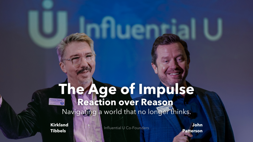 Hosted by Influential U cofounders John Patterson, Kirkland Tibbels, and faculty, this series explores what drives our reactions and how to break the cycle before it’s too late.